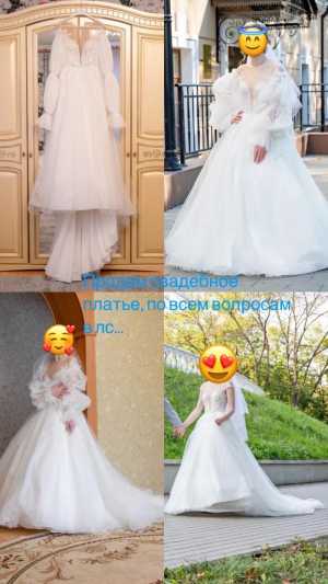 Женское длинное платье, очень красивое, одевали один раз. Длина-140 см. Рукава- длинные.